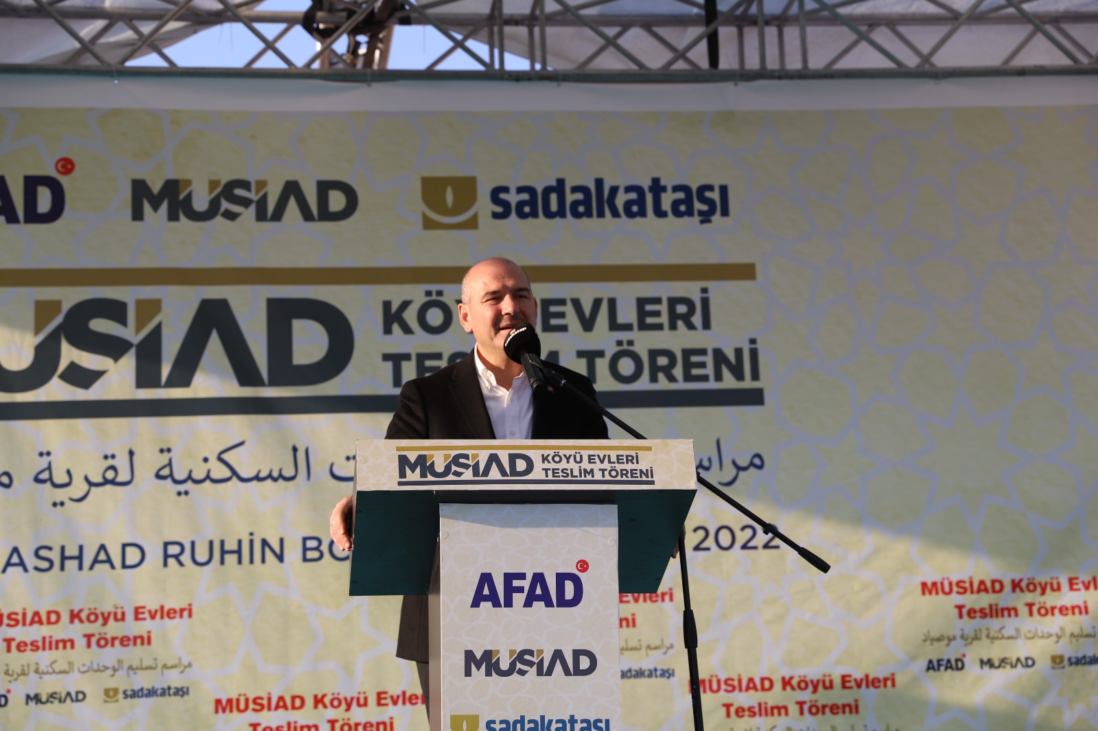 Programda konuşan İçişleri Bakanı Soylu, "Allah nasip ederse bu yılın sonuna kadar 100 bin briket evi tamamlamış olacağız. Huzurunuzda MÜSİAD'a ve Sadakataşı'na, bu iyilik kervanında yol aldıkları için özellikle sayın genel başkanın biraz önce buraya gerçekleştireceğini ifade ettiği meslek lisesinin de adımını attıkları için minnet ve şükranlarımı ifade ediyorum. Allah razı olsun diyorum" dedi.