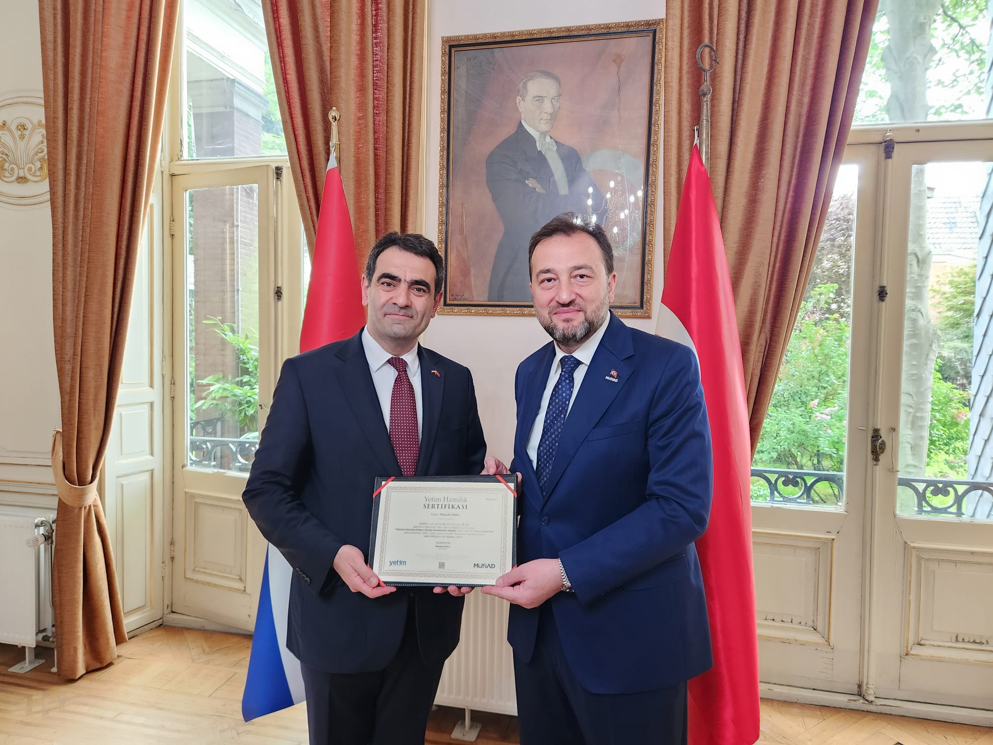 Hollanda temasları kapsamında bölgedeki MÜSİAD üyelerini de ziyaret eden MÜSİAD Genel Başkanı Mahmut Asmalı, Lahey'e geçerek burada Türk Büyükelçiliğine bir ziyaret gerçekleştirdi.