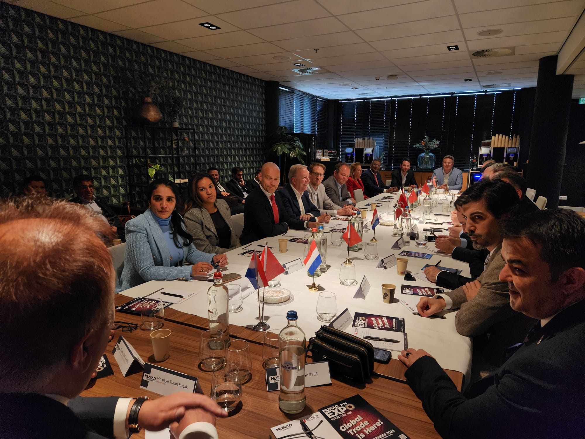 Türkiye'nin Lahey Büyükelçisi Selçuk Ünal, yabancı misyon temsilcileri, Türk-Hollanda iş dünyası temsilcileri ve MÜSİAD üyelerinin katılımıyla gerçekleşen etkinlikte, iki ülke ticari ilişkilerine yönelik değerlendirmelerde bulunuldu.