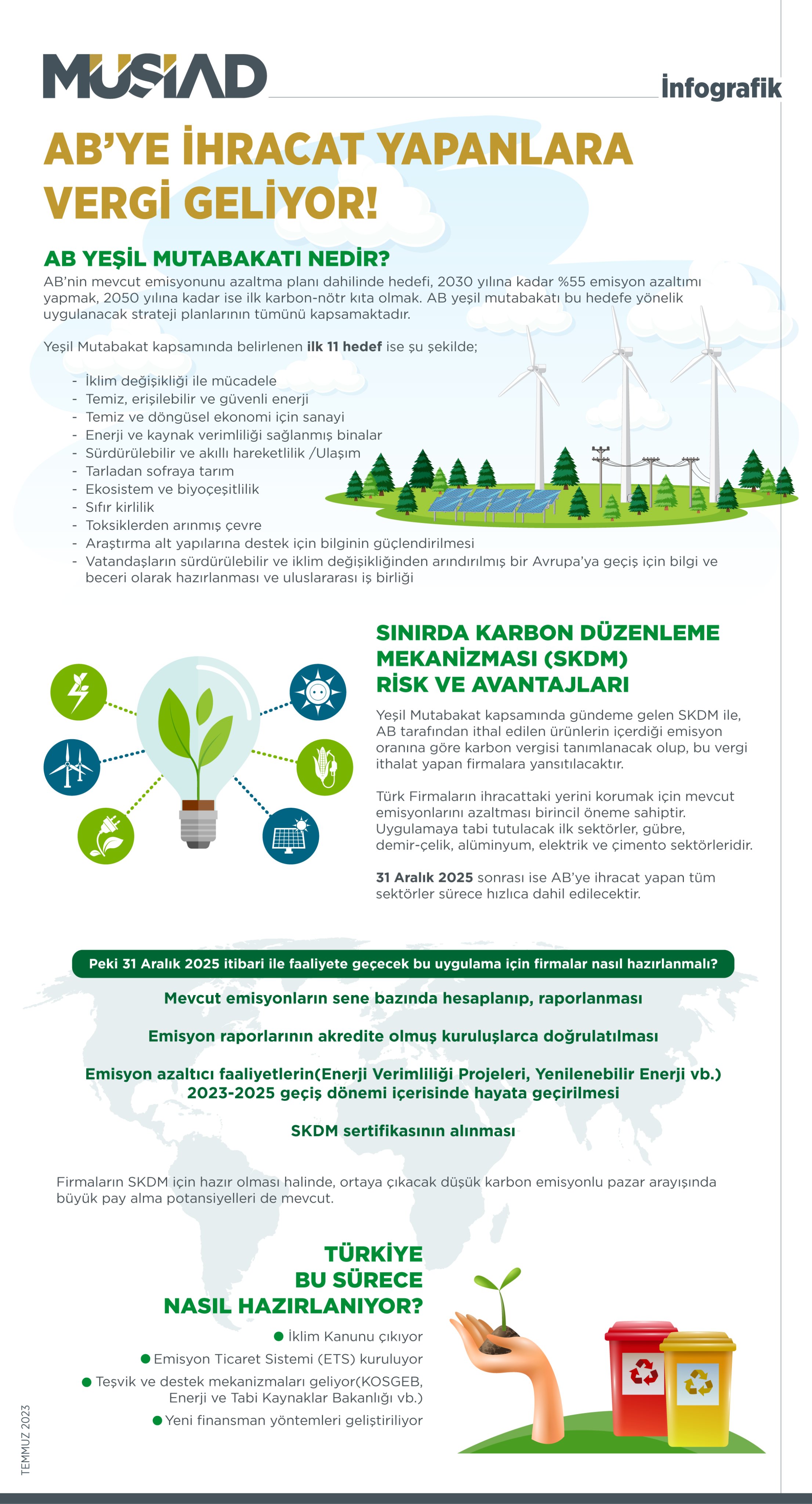 MÜSİAD Sektör Kurulları ve Fuar Forum Komisyonu Başkanlığında, MÜSİAD Yeşil Ekonomi Çalışma Grubu oluşturuldu. AB'nin mevcut emisyonunu azaltma planı dahilinde, 2030 yılına kadar yüzde 55 emisyon azaltımı yapma hedefiyle ilgili Yeşil Mutabakat Eylem Planı'nı esas alan çalışma grubu, ihracat yapan MÜSİAD üyelerine bilgilendirme ve dönüşüm gibi konularda danışmanlık yapacak.
