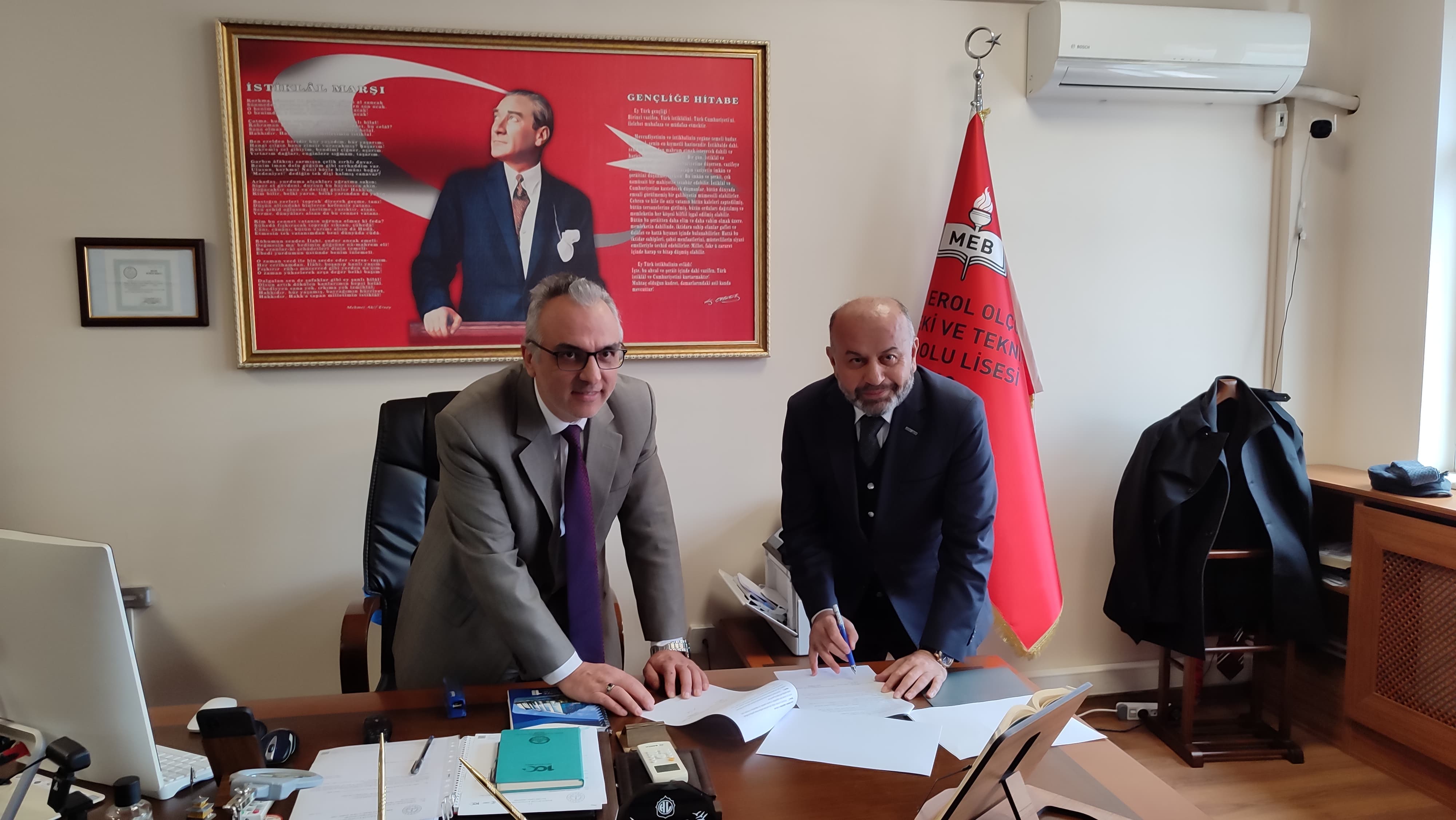 Müstakil Sanayici ve İşadamları Derneği (MÜSİAD) Otomotiv ve Ulaşım Araçları Sektör Kurulu, Şehit Erol Olçok Mesleki ve Teknik Anadolu Lisesi’ne Lise Hamiliği Projesi Kapsamında protokol imzalamak için kurumsal ziyaret gerçekleştirdi.