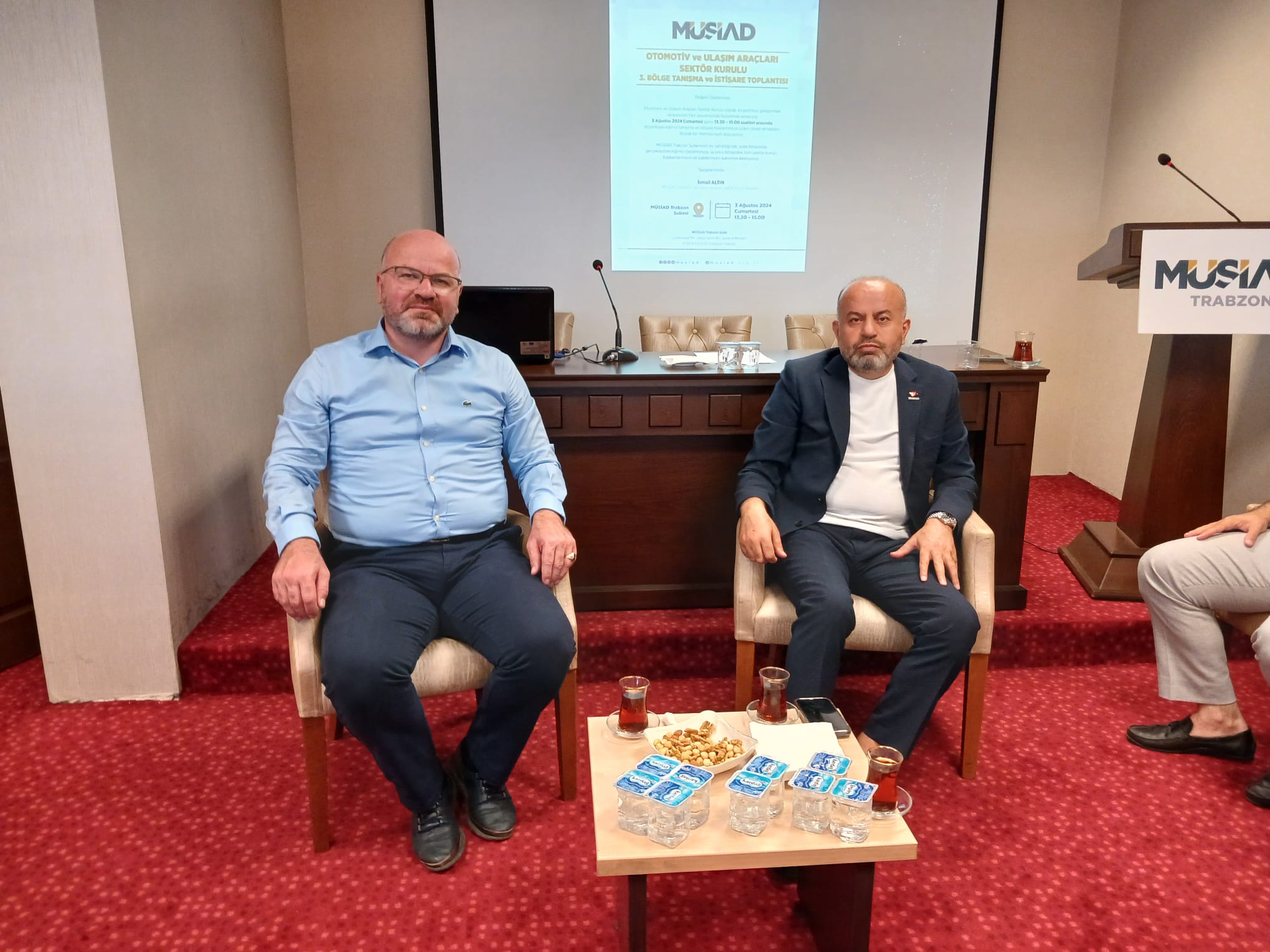 MÜSİAD Otomotiv ve Ulaşım Araçları Sektör Kurulu Başkanı İsmail Altın ve beraberindeki heyet tarafından düzenlenen Trabzon programının ilk aşamasında, MÜSİAD Trabzon Şubesi’nde çevre şubelerden de otomotiv ve ulaşım araçları sektörü üyelerinin katıldığı bölgesel toplantı gerçekleştirildi. Toplantıda bölge üyeleri ile tanışma ve istişare gerçekleştirildi. Sektörün bölgedeki durumu, sektörün güncel durumu, sektörel problemler ve çözüm önerileri gibi konular üzerine istişarelerde bulunuldu.
