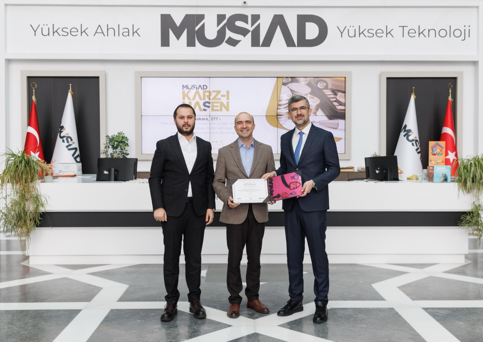 Toplantının sonunda Komisyon Başkanı Erkan GÜL, KOSGEB Başkanı İbrahimcioğlu' na katkıları ve bilgilendirmeleri için teşekkürlerini ileterek toplantıyı sonlandırdı. Ayrıca MÜSİAD' ın değerli bir hatırası olan Yetim Hamilik Sertifikası Sayın İBRAHİMCİOĞLU' na takdim edildi.