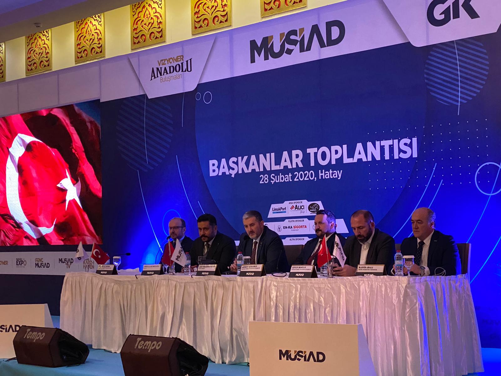 Müstakil Sanayici ve İşadamları Derneği (MÜSİAD) Genel Başkanı Abdurrahman Kaan ve Yurt içi Şube Başkanları, 103.Genel İdare Kurulu kapsamında Hatay’da düzenlenen Başkanlar Toplantısı’nda İdlib’de yaşanan hain saldırıya ilişkin basın açıklaması yaptı