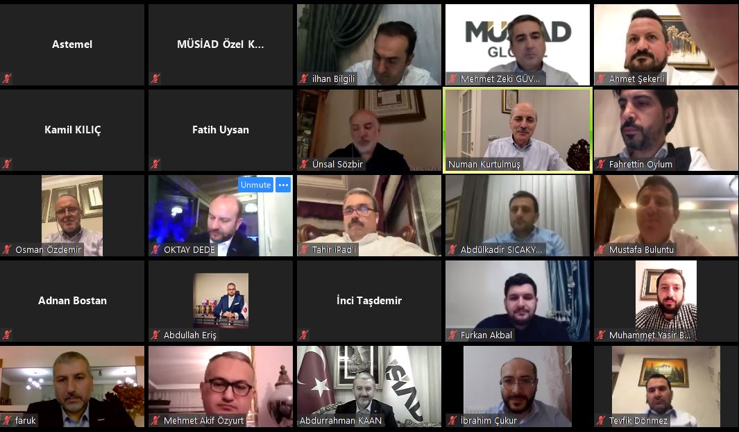Müstakil Sanayici ve İşadamları Derneği (MÜSİAD) Yönetim Kurulu Toplantısı, AK Parti Genel Başkanvekili Numan Kurtuluş’un katılımlarıyla, online platform üzerinden dün gece gerçekleştirildi. MÜSİAD’ın 30. Kuruluş Yıl Dönümü vesilesiyle düzenlenen toplantıda, ülke ve dünya gündemine ilişkin konular ele alındı.